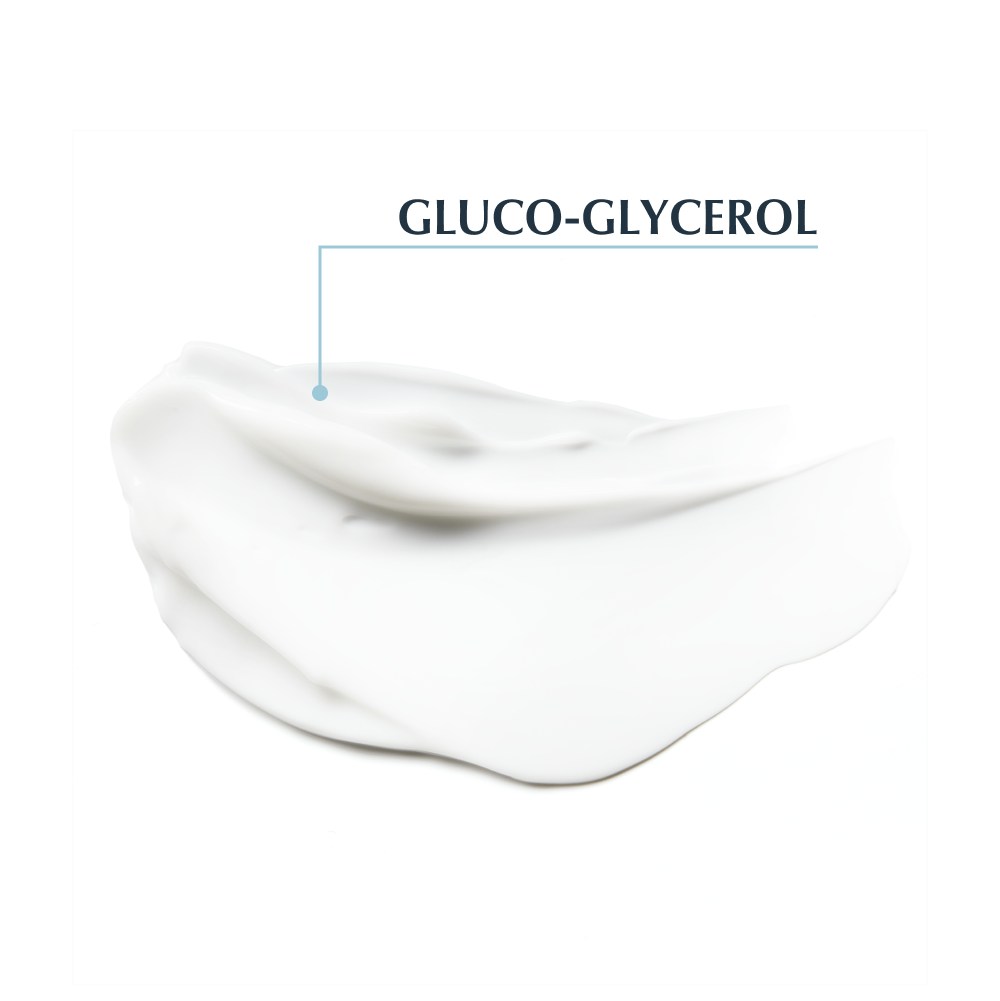 Die Gesichtspflege enthält naturidentisches Gluco-Glycerol, welches die Aktivierung der hauteigenen Feuchtigkeitskanäle, der Aquaporine, unterstützt. Mit diesem Feuchtigkeitsnetzwerk der Aquaporine wird der Ausgleich des Feuchtigkeitshaushaltes der Haut von innen heraus gefördert – für eine strahlende Haut.