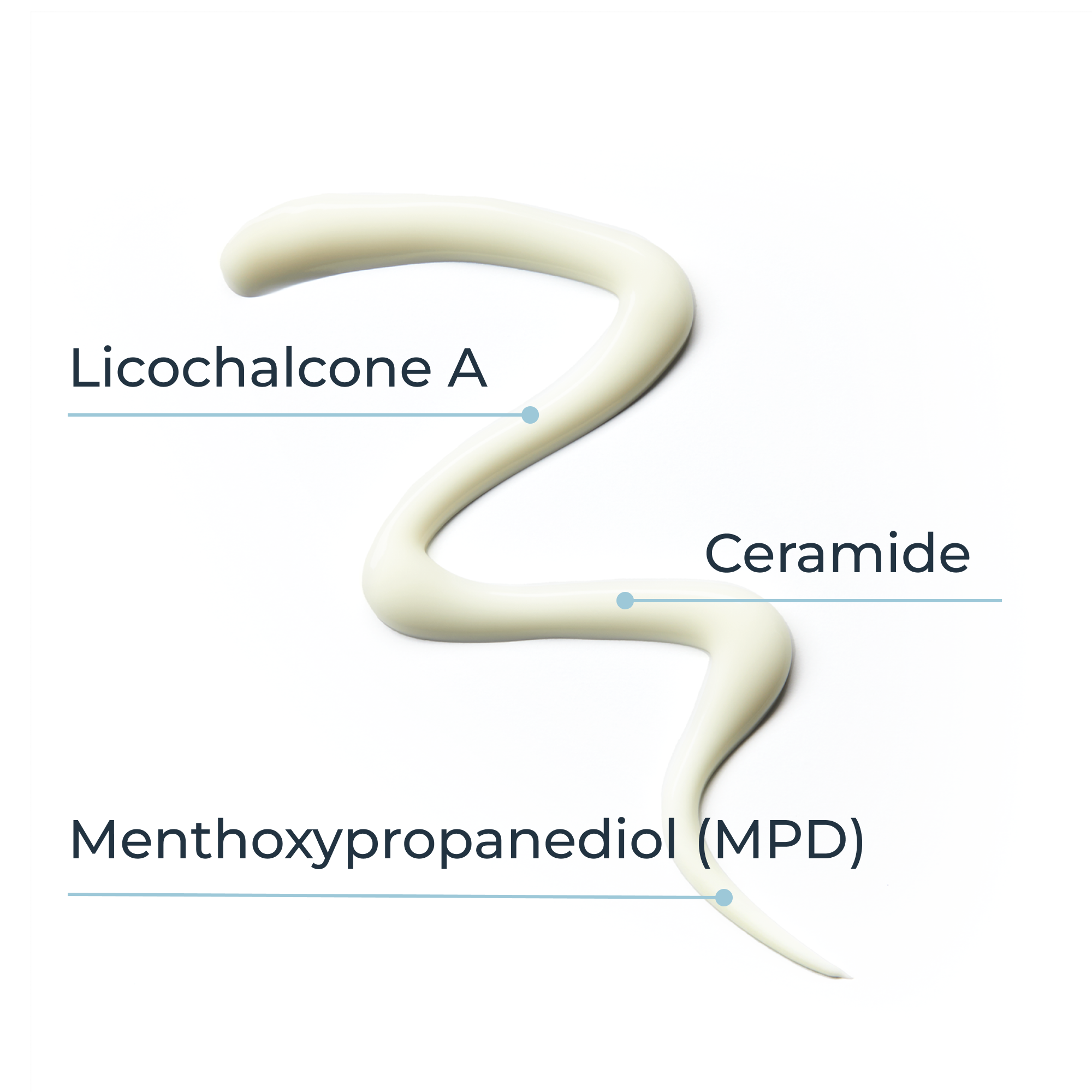 Aqua, Glycerin, Caprylic/Capric Triglyceride, Dimethicone, Pentaerythrityl Tetraisostearate, Triisostearin, Vitis Vinifera Seed Oil, Oenothera Biennis Oil, Cetyl Alcohol, Glyceryl Stearate, PEG-40 Stearate, Glycyrrhiza Inflata Root Extract, Ceramide NP, Decylene Glycol, Menthoxypropanediol, Citric Acid, Sodium Citrate, Tocopherol, Ascorbyl Palmitate, Trisodium EDTA, BHT, 1,2-Hexanediol, Phenoxyethanol