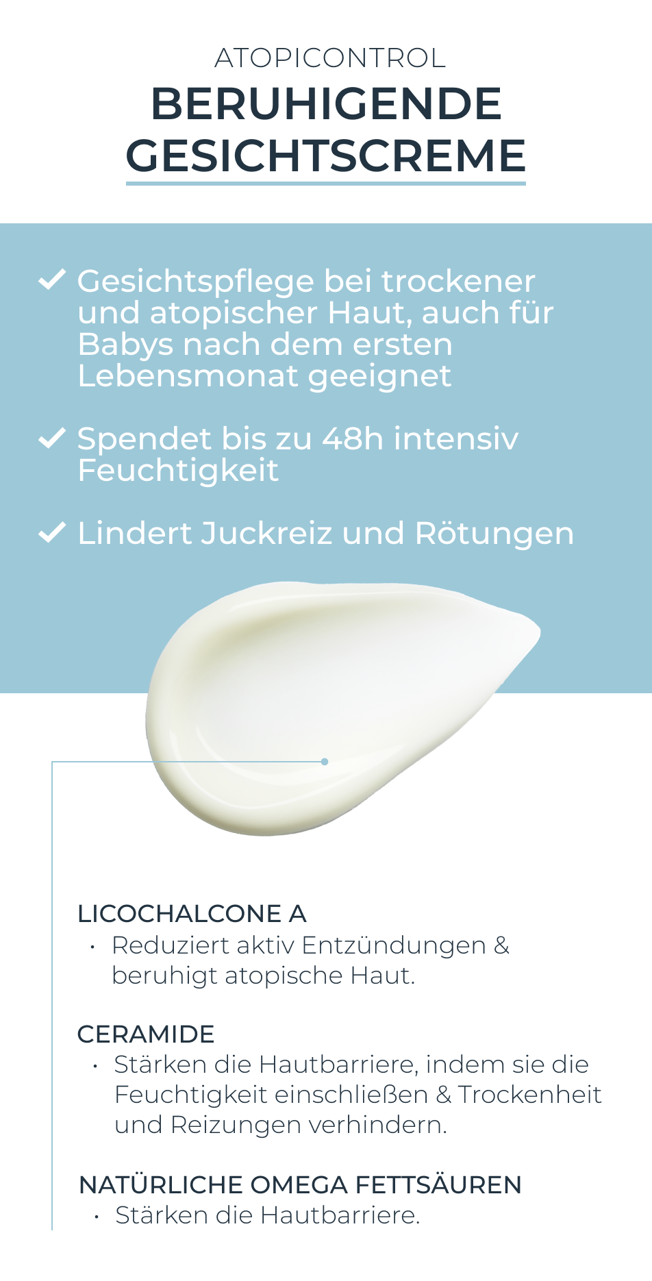 • Tägliche Gesichtspflege bei trockener Haut und während symptomfreien Phasen