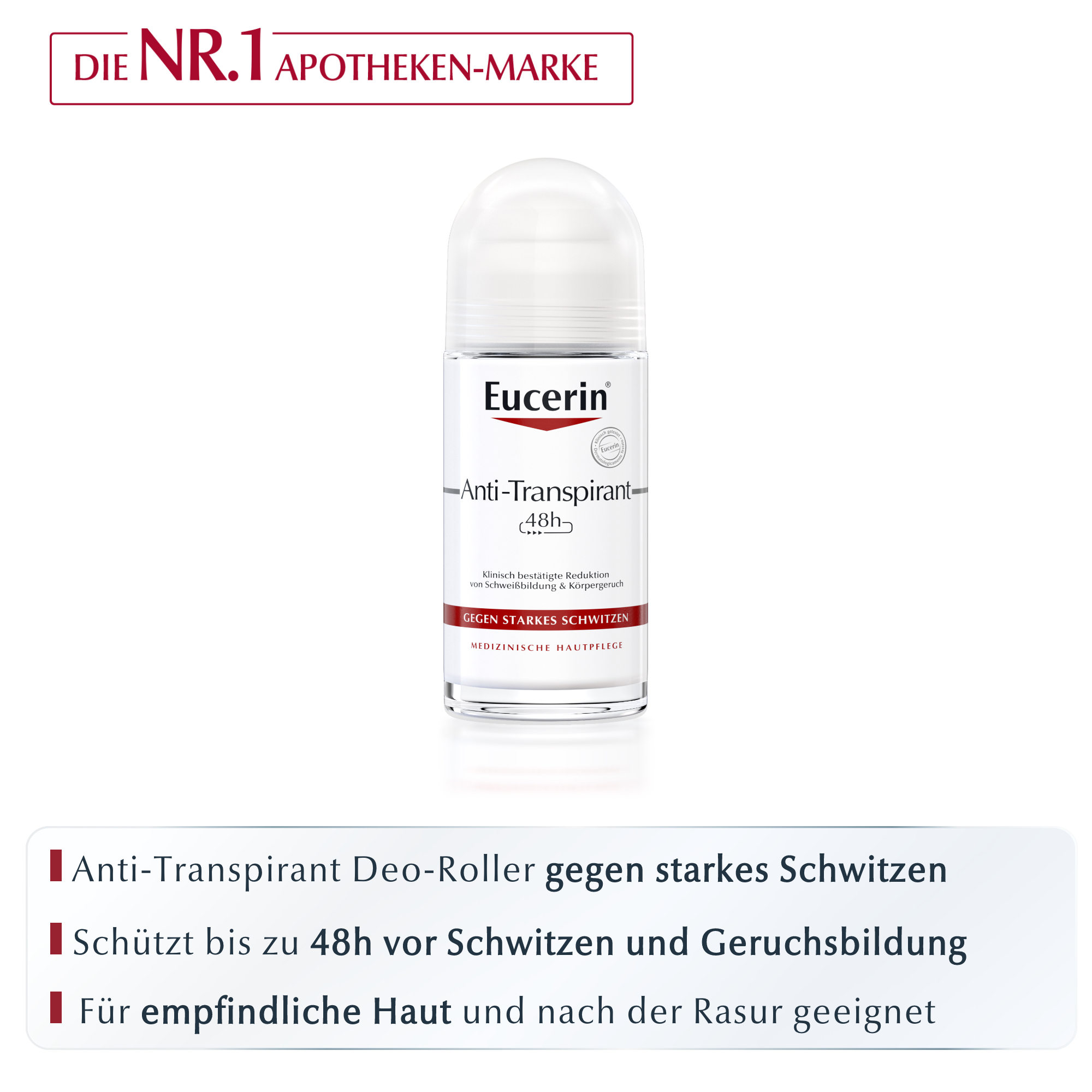 Da starkes Schwitzen viele Ursachen haben kann, wirkt das Eucerin Deo auch bei vermehrter Schweißbildung durch hormonelle Umstellungen oder Stoffwechselerkrankungen.