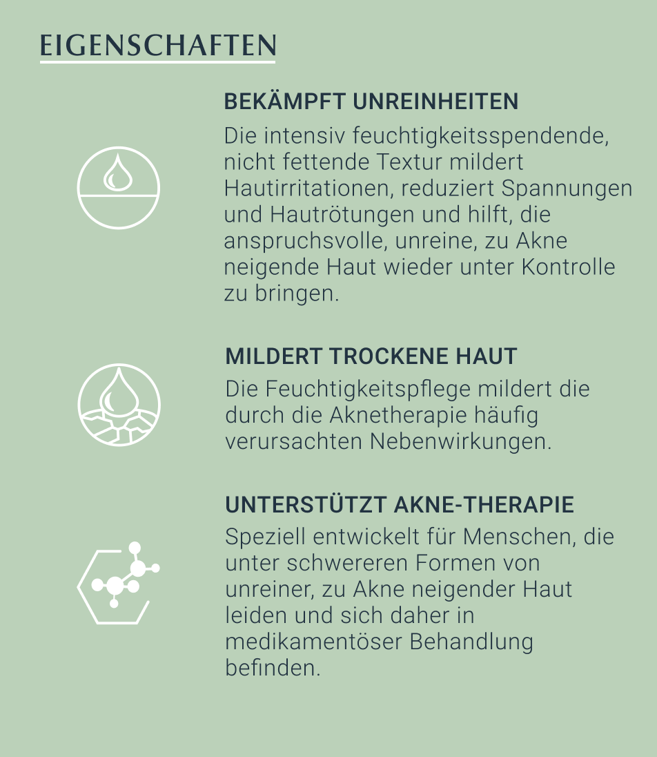 • Für durch Aknetherapie ausgetrocknete und irritierte Haut
