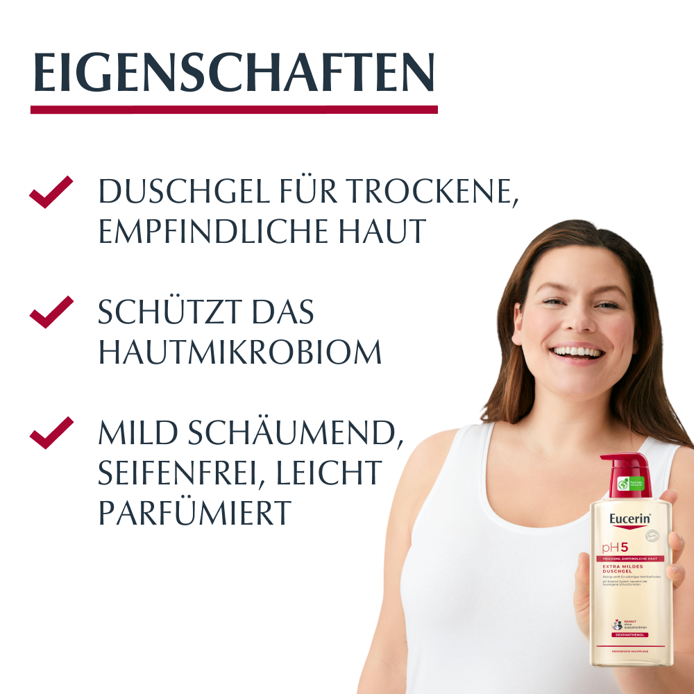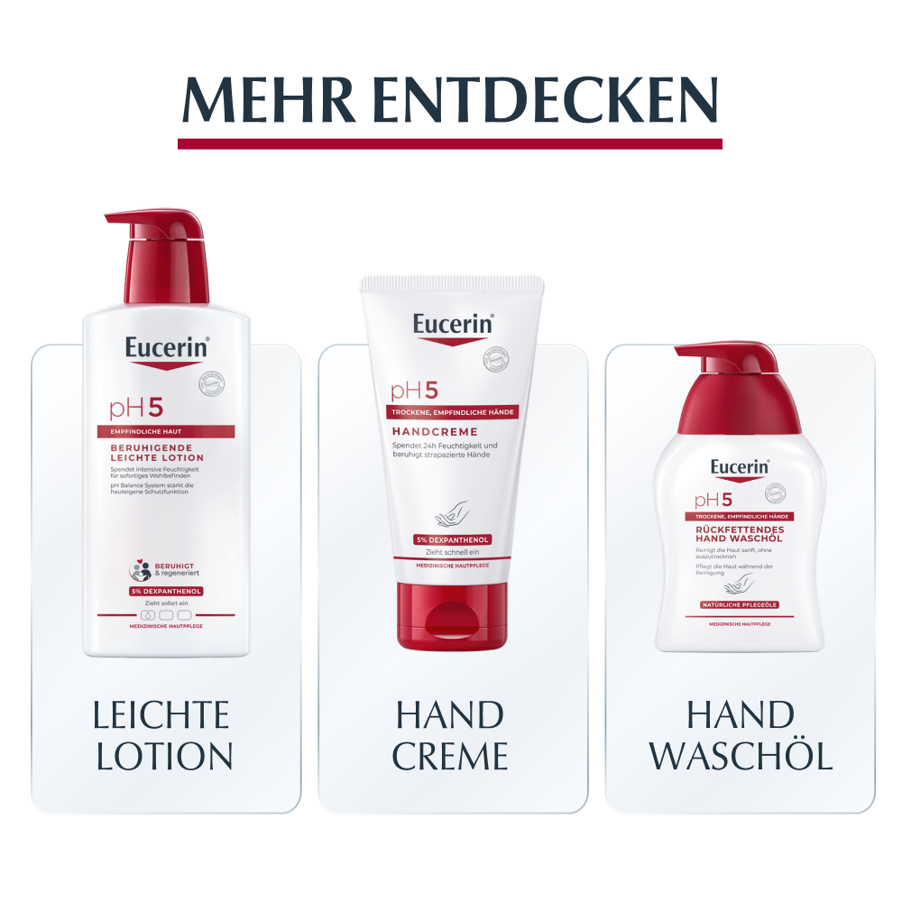 - Für beste Ergebnisse in Kombination mit einem feuchtigkeitsspendenden Pflegeprodukt aus der Eucerin PH5 Produktserie verwenden