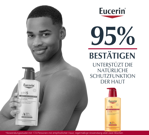 - Für beste Ergebnisse in Kombination mit einem feuchtigkeitsspendenden Pflegeprodukt aus der Eucerin pH5 Produktserie verwenden
