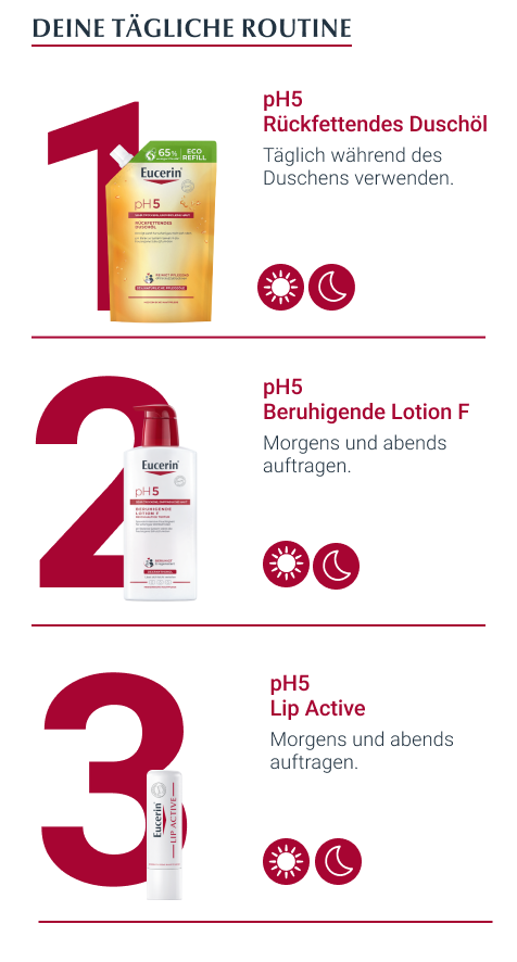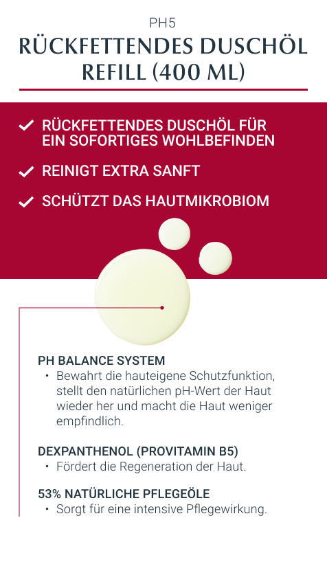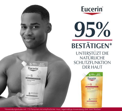 - Für beste Ergebnisse in Kombination mit einem feuchtigkeitsspendenden Pflegeprodukt aus der Eucerin pH5 Produktserie verwenden