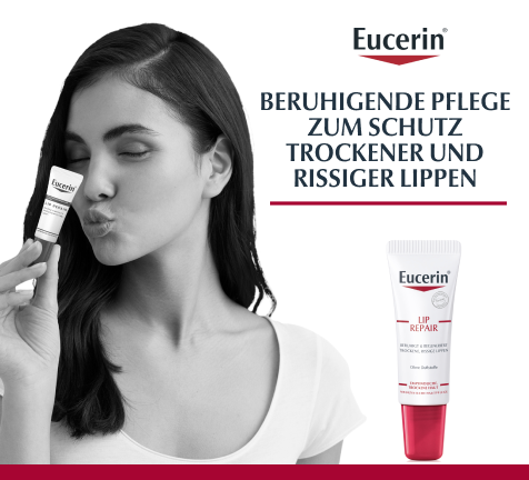 - Um das Hautbild der Lippen sichtbar zu verbessern, Eucerin Lip Repair Pflegestift so oft wie nötig auftragen