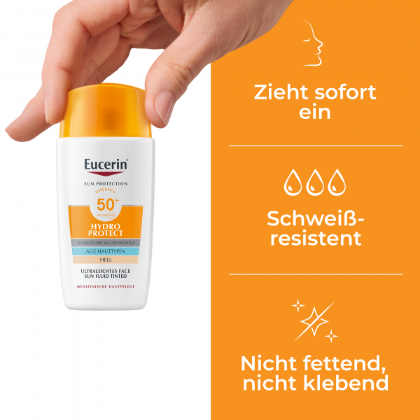 Eucerin Hydro Protect Ultraleichtes Face Sun Fluid Tinted LSF 50+ Hell – Getönter Sonnenschutz für das Gesicht, 50ml