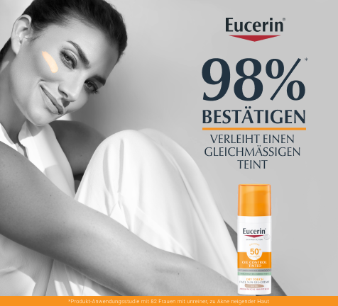 Eucerin Oil Control Tinted Face Sun Gel-Creme LSF 50+ Mittel ist ein Sonnenschutz mit Farbpigmenten für die tägliche Anwendung für unreine, zu Akne neigende Haut.