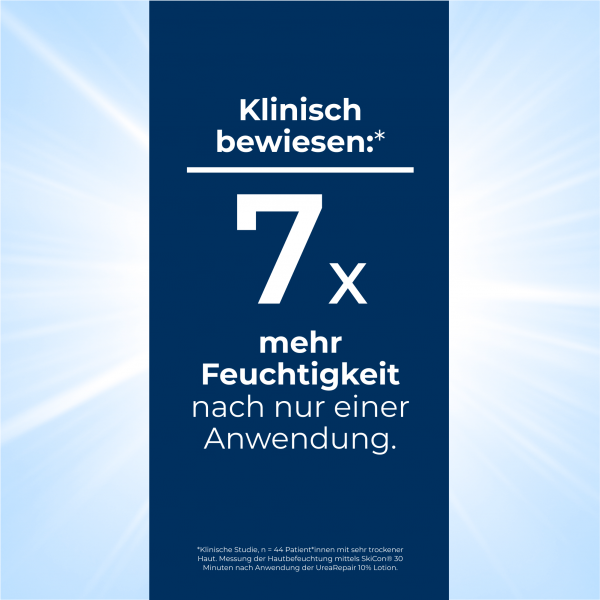 Die Wirksamkeit und Hautverträglichkeit der UreaRepair PLUS Lotion 10% wurde im Rahmen verschiedener Studien an Studienteilnehmern mit sehr trockener Haut bestätigt.