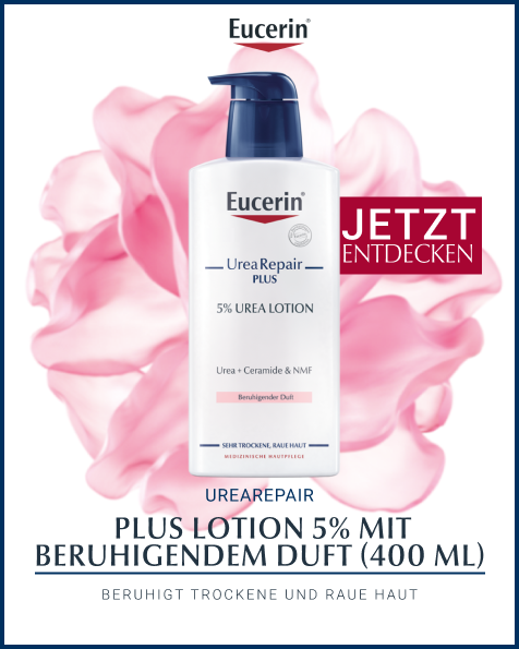 Die Eucerin UreaRepair PLUS Lotion 5% mit beruhigendem Duft ist eine hochwirksame Pflegecreme bei sehr trockener, rauer und gespannter Haut. Mit der Körperlotion wird die Haut 48 Stunden langanhaltend vor Trockenheit geschützt und die Anzeichen trockener Haut werden gelindert. Als Wasser-in-Öl Emulsion zieht die leichte Lotion schnell ein, macht die Haut glatt sowie geschmeidig und stärkt ihre Widerstandskraft.
