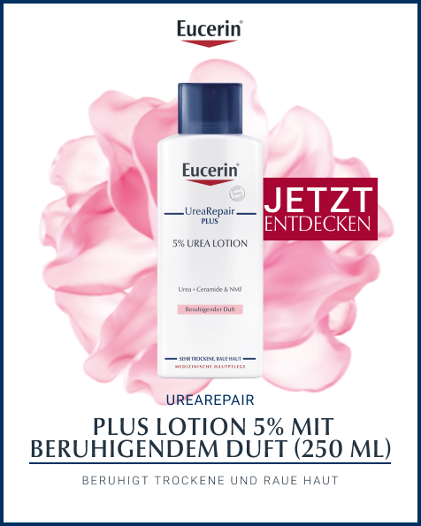Die Eucerin UreaRepair PLUS Lotion 5% mit beruhigendem Duft ist eine hochwirksame Pflegecreme bei sehr trockener, rauer und gespannter Haut. Mit der Körperlotion wird die Haut 48 Stunden langanhaltend vor Trockenheit geschützt und die Anzeichen trockener Haut werden gelindert. Als Wasser-in-Öl Emulsion zieht die leichte Lotion schnell ein, macht die Haut glatt sowie geschmeidig und stärkt ihre Widerstandskraft.
