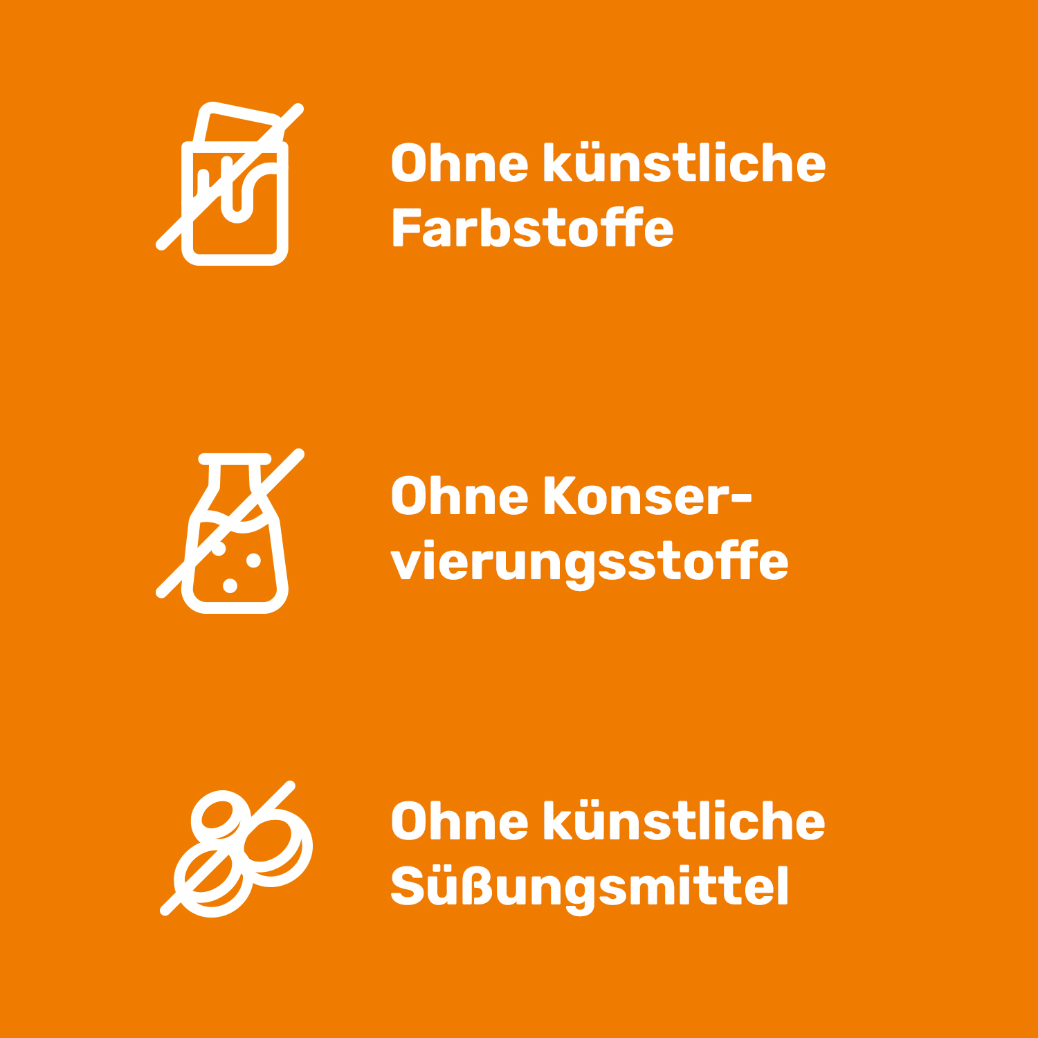• Ohne künstliche Farbstoffe und Konservierungsstoffe