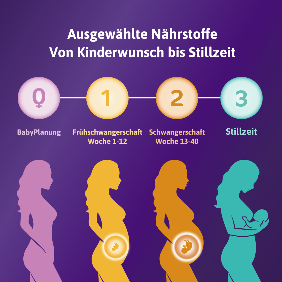 "Mit Beginn des zweiten Trimesters deiner Schwangerschaft möchtest du den gesunden Start ins Leben deines Babys weiter unterstützen.1In der 13. Woche beginnt eine weitere wichtige Wachstumsphase für das Baby. Femibion®2 Schwangerschaft bietet dir:Omega 3-DHA, zur Unterstützung der gesunden Gehirnentwicklung deines Babys1;Folsäure Plus1 (eine Kombination aus Folsäure und Metafolin®);Andere ausgewählte Nährstoffe, die speziell auf deine Schwangerschaftsphase abgestimmt sind."Femibionist die Nr. 1* Empfehlung von Gynäkologinnen und Gynäkologen und bietet ein abgestimmtes Produkt für jede Phase von Kinderwunsch bis Stillzeit.Ausgewählte Nährstoffe von der 13. Woche bis zur GeburtDHA, kurz für Docosahexaensäure, ist eine mehrfach ungesättigte Omega-3-Fettsäure. Sie trägt zur gesunden Gehirn-und Augenentwicklung des Fötus bei1. Femibion® 2 Schwangerschaft enthält 200mg DHA. Die Aufnahme von DHA durch die Mutter -und später durch die Muttermilch - bleibt bis in die Stillzeit wichtig. Zusätzlich zur empfohlenen täglichen Aufnahme von 250mg Omega-3-Fettsäuren (DHA und EPA) für Erwachsene wird empfohlen, weitere 200mg DHA einzunehmen.Ausgewählte Vitamine und Mineralstoffe mit DHA, verpackt in eine Tablette und eine Kapsel für dich und dein Baby1¹Femibion®-Produkte enthalten Folsäure Plus (eine Kombination aus Folsäure und Metafolin®) sowie ausgewählte Nährstoffe. Metafolin® ist eine Form von Folat, welche direkt vom Körper aufgenommen werden kann und hilft, den Folatspiegel zu erhöhen, welcher für die gesunde Entwicklung deines Babys wichtig ist.¹ Metafolin® ist eine eingetragene Marke der Merck KGaA, Darmstadt, und wird unter Lizenz verwendet.Die zusätzliche Folsäureaufnahme erhöht den mütterlichen Folatspiegel. Ein niedriger mütterlicher Folatspiegel ist ein Risikofaktor für die Entstehung von ns einen Monat vor und bis zu drei Monate nach der Empfängnis einzunehmen. Es gibt wissenschaftliche Nachweise, die nahelegen, dass ein niedriger mütterlicher Folatspiegel ein signifikanter Risikofaktor für die Entwicklung von Neuralrohrdefekten ist. Es gibt jedoch auch andere Risikofaktoren. Daher kann die Veränderung eines einzelnen Faktors eine vorteilhafte Wirkung haben oder nicht. Folat bleibt auch in der späteren Schwangerschaft wichtig, da es zum Wachstum des mütterlichen Gewebes (z.B. der Plazenta) beiträgt. Die Plazenta versorgt das Baby mit allen Nährstoffen. Daher sollte während der gesamten Schwangerschaft auf eine ausreichende Folsäurezufuhr geachtet werden.Femibion® 2 und Femibion® 3 enthalten außerdem DHA (mehrfach ungesättigte Omega-3-Fettsäure). Die Einnahme von DHA durch die Mutter trägt zur normalen Entwicklung des Gehirns und der Augen des Fötus und gestillten Säuglings bei. Zusätzlich zu der empfohlenen Tagesdosis von 250 mg Omega-3-Fettsäuren (DHA und EPA) für Erwachsene wird die Einnahme von weiteren 200 mg DHA empfohlen. ²Obeid R et al. Eur J Nutr. 2018;57(5):1771-1780³Femibion® ist führend in der Kategorie der pränatalen Multivitamine auf einem kombinierten Apothekenmarkt von 30 europäischen Märkten.