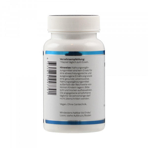 Die angegebene empfohlene tägliche Verzehrsmenge darf nicht überschritten werden. Nahrungsergänzungsmittel sind kein Ersatz für eine ausgewogene und abwechslungsreiche Ernährung und gesunde Lebensweise. Für kleine Kinder unzugänglich aufbewahren.