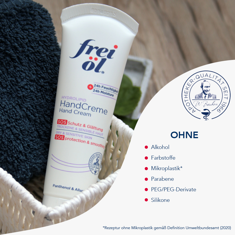 Die glättende frei öl® HYDROLIPID HandCreme - SOS Pflege für strapazierte Hände
