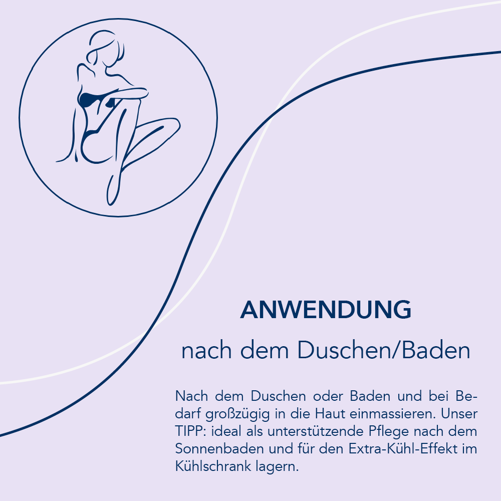 Ideal als unterstützende Pflege nach dem Sonnenbaden und für den Extra-Kühl-Effekt im Kühlschrank lagern.