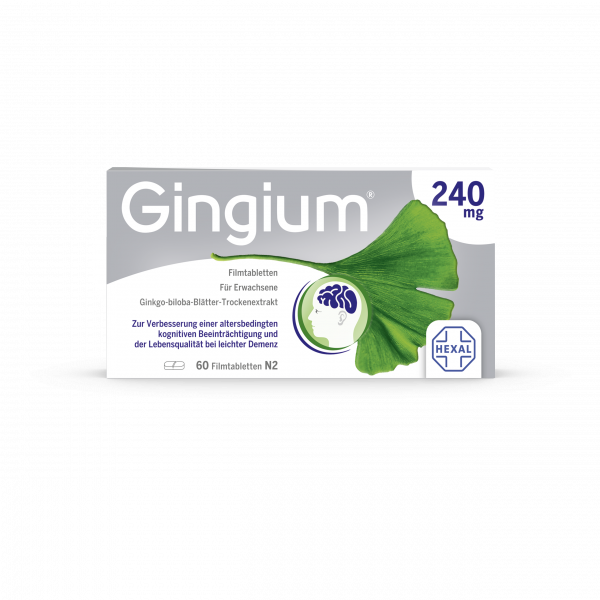 Gingium® extra 240 mg wird angewendet Zur symptomatischen Behandlung von hirnorganisch bedingten geistigen Leistungseinbußen. Die Anwendung erfolgt im Rahmen eines therapeutischen Gesamtkonzeptes bei fortschreitender Abnahme bzw. Verlust erworbener geistiger Fähigkeiten (dementielles Syndrom) mit den Hauptbeschwerden: Gedächtnisstörungen, Konzentrationsstörungen, Niedergeschlagenheit, Schwindel, Ohrensausen, Kopfschmerzen.