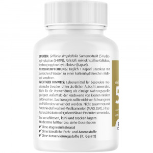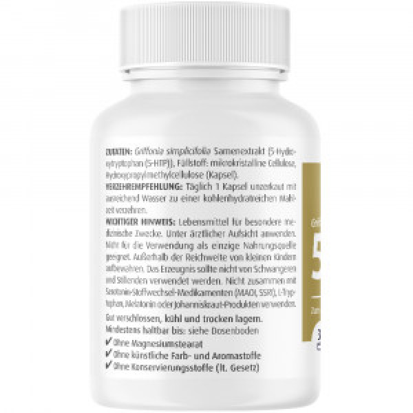 · Eine Kapsel enthält 200mg 5-HTP, das auf natürliche Weise mittels Extraktion gewonnen wird