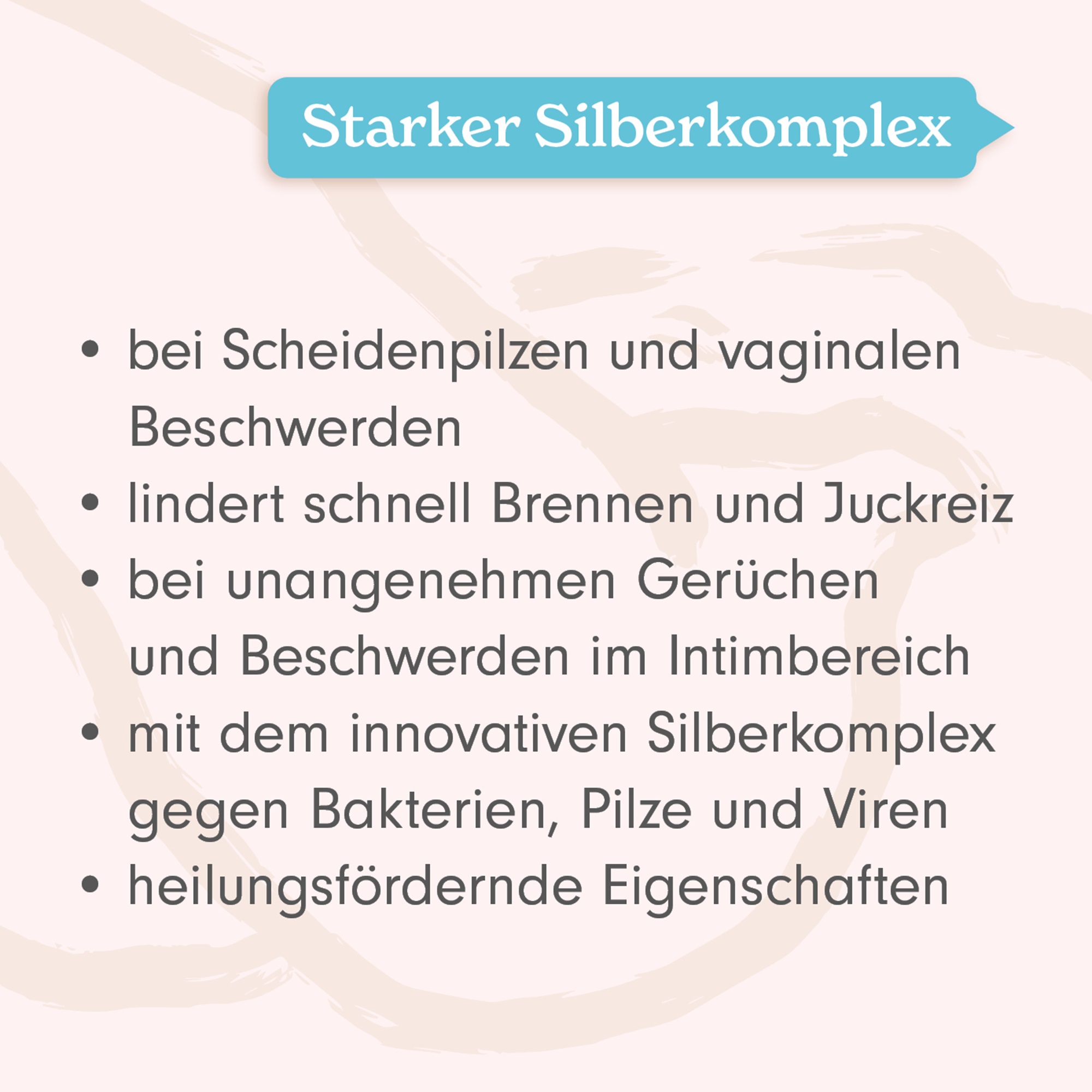 Gynella® Silver Caps fördern die intime Gesundheit, indem sie die Heilung unterstützen und die Vaginalschleimhaut stärken. Die innovative Formulierung wirkt aufgrund vielfältiger Effekte. Die Hauptwirkung beruht auf der Bildung einer Schutzbarriere in der Vagina, die das Gewebe vor Reizungen schützt und Feuchtigkeit spendet, während sie die Elastizität des Gewebes fördern. Die Inhaltsstoffe von Gynella® Silver Caps bilden eine schützende Schicht auf gereiztem, entzündetem oder verletztem das Gewebe und fördern so den normalen physiologischen Heilungsprozess. Die Gynella® Vaginalkapseln können auch zur Heilung von vaginalen Verletzungen nach der Entbindung eingesetzt werden. Dank ihres einzigartigen patentierten Silberkomplexes mit seinen antimikrobiellen Eigenschaften tragen sie zur Wiederherstellung des natürlichen Gleichgewichts der Scheidenflora bei. Erlebe mit dank der aktiven Silberionen ein umfassendes Schutzgefühl gegen Scheidenpilz, Bakterien und Viren im Intimbereich.
