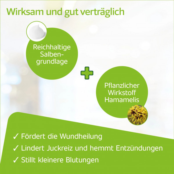 - Enthält natürliche Inhaltsstoffe aus der Hamamelis-Pflanze.