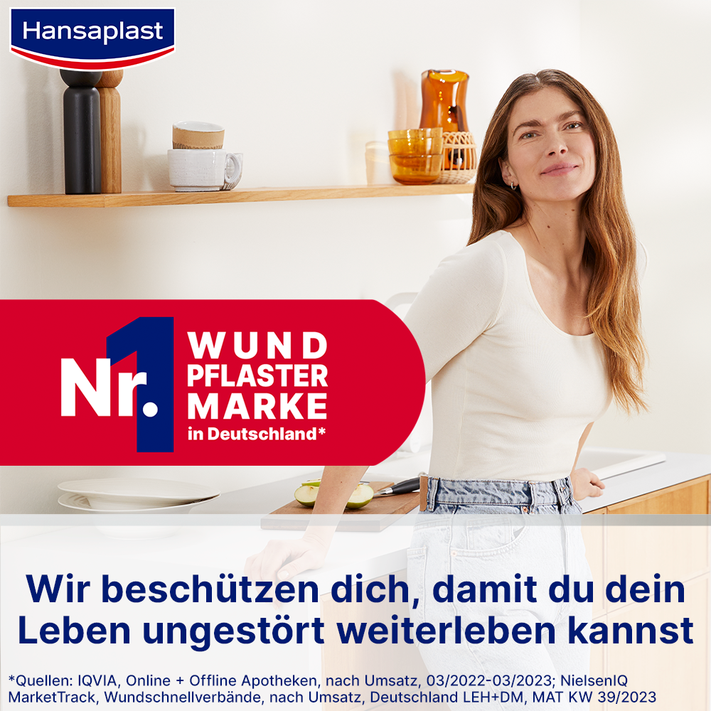 Das Hansaplast Bacteria Shield schützt vor Schmutz und 99% der Bakterien. Zudem ist das Hansaplast Pflaster widerstandsfähig und atmungsaktiv, wodurch eine ungestörte Wundheilung ermöglicht wird. Das Material bietet außerdem eine extra starke Klebkraft und so haftet das Pflaster zuverlässig auf der Haut.