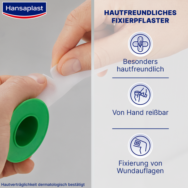 Das hypoallergene Fixierpflaster ist besonders für empfindliche und sensible Haut besonders gut geeignet.Hansaplast Sensitiv Fixierpflaster ist geeignet zur einfachen und sicheren Fixierung von Verbänden. Das Fixierpflaster ist von Hand reißbar.
