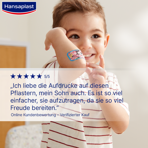 Mit diesen fröhlichen Pflastern geht selbstverständlich auch unsere zuverlässige Wundversorgungskompetenz einher. Die Farben sind sicher und die Pflaster lassen sich schmerzfrei entfernen. Das flexible Material der Hansaplast Kids Pflaster ist wasserfest und schützt die Wunden vor Schmutz und Bakterien.