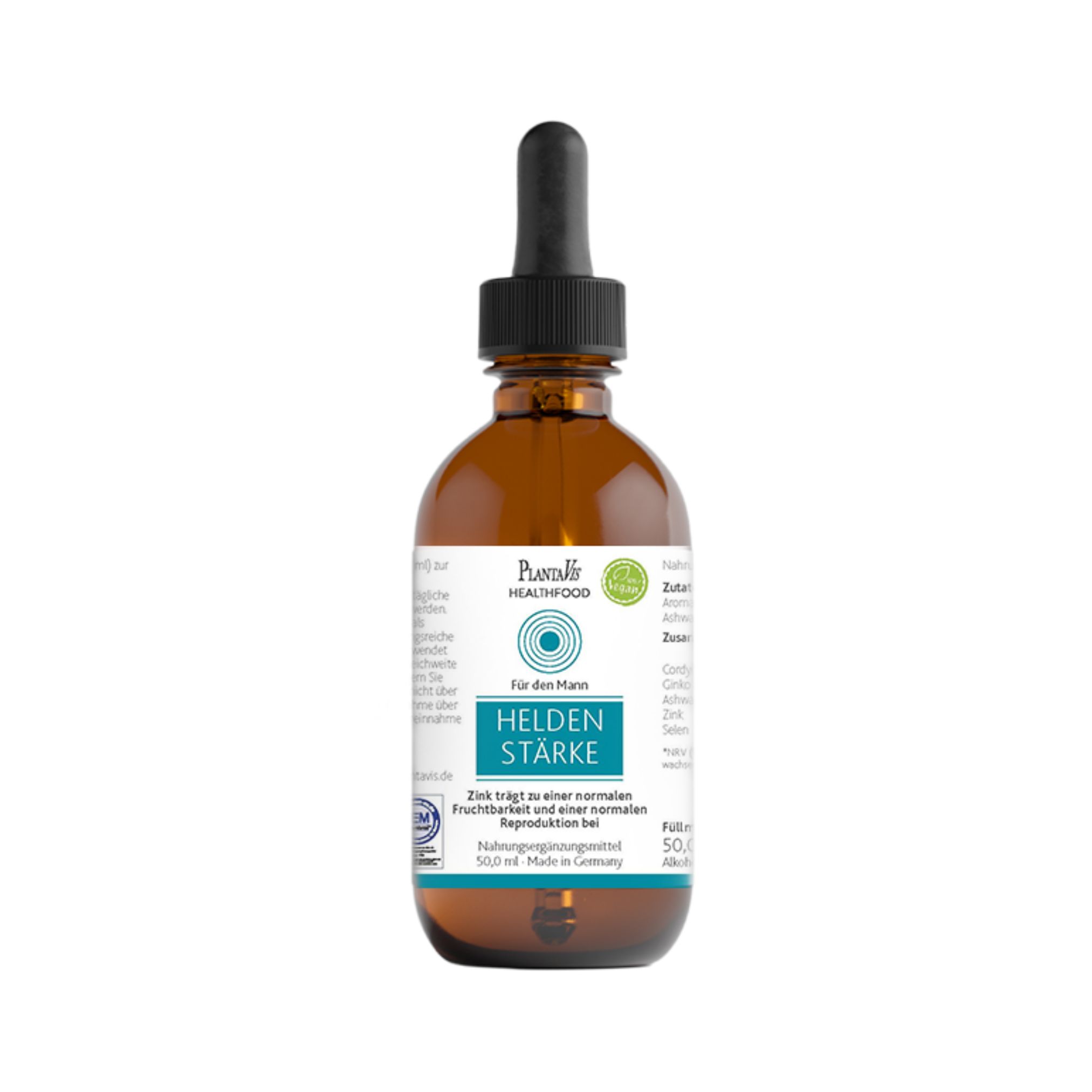 Wir haben unsere HeldenStärke Tinktur entwickelt, um die Männergesundheit mit natürlichen Pflanzenstoffen und wertvollen Spurenelementen effektiv zu unterstützen. Potenzprobleme sind ein Teil der Männergesundheit, welcher als unangenehm empfunden wird und eine psychische Belastung sein kann. Während in einigen Fällen eine medikamentöse Therapie nötig ist, reicht bei manchen Männern eine Umstellung des Lebensstils und der Ernährung aus. Eine ausgewogene Ernährung kann sich positiv auf die Potenz und die Fruchtbarkeit des Mannes auswirken. Mit einer Versorgung durch die richtigen Nährstoffe kann ein gutes Fundament für die Fruchtbarkeit des Mannes gebaut werden – hierfür bildet unsere HeldenStärke Tinktur die bestmögliche Grundlage.Die Tinktur enthält deshalb die lebenswichtigen Spurenelemente Zink und Selen, die auch eine Rolle bei Reproduktionsvorgängen einnehmen. So trägt Zink zu einer normalen Fruchtbarkeit und einer normalen Reproduktion bei und Selen trägt zu einer normalen Spermabildung bei. Beide Spurenelemente sind hochdosiert, damit eine gute Bioverfügbarkeit gewährleistet ist und der Körper sie ideal aufnehmen kann.