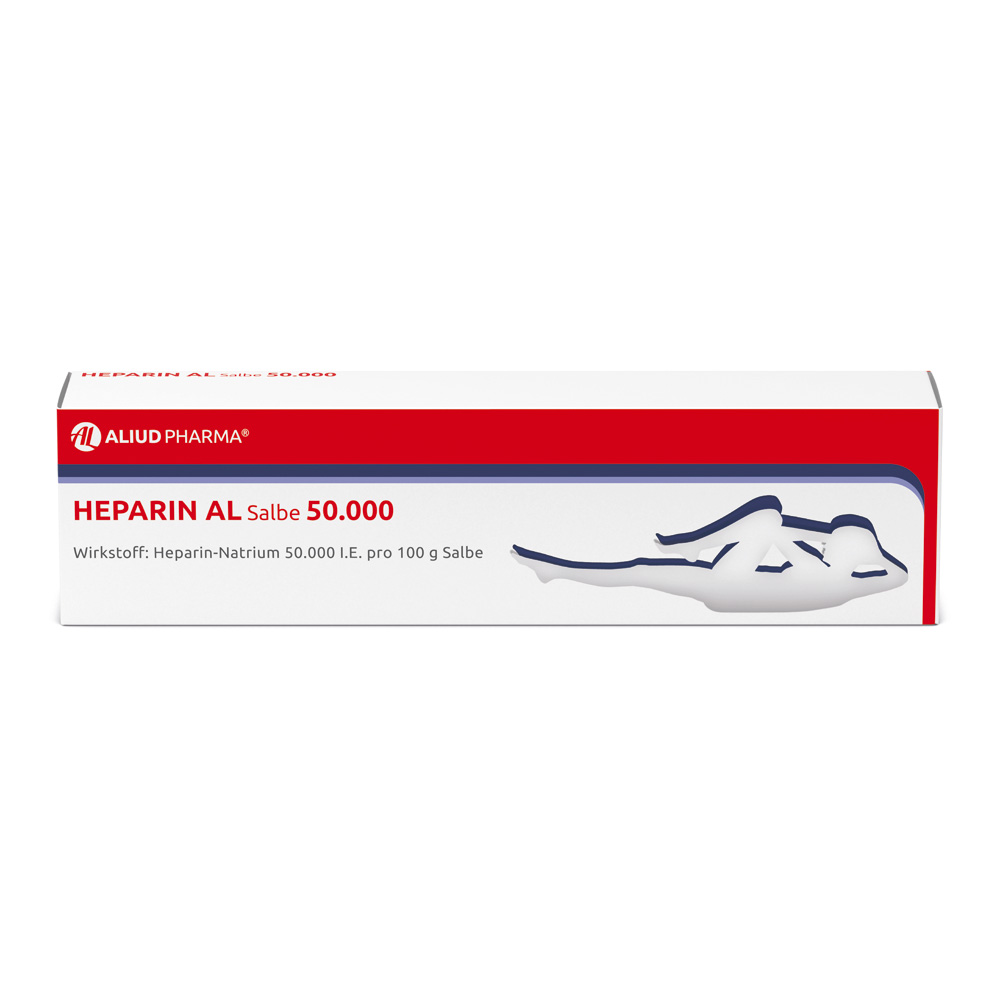 100 g HEPARIN AL Salbe 50.000 enthalten 0,25 g Heparin-Natrium (Mucosa vom Schwein), das entspricht 50.000 i.E.