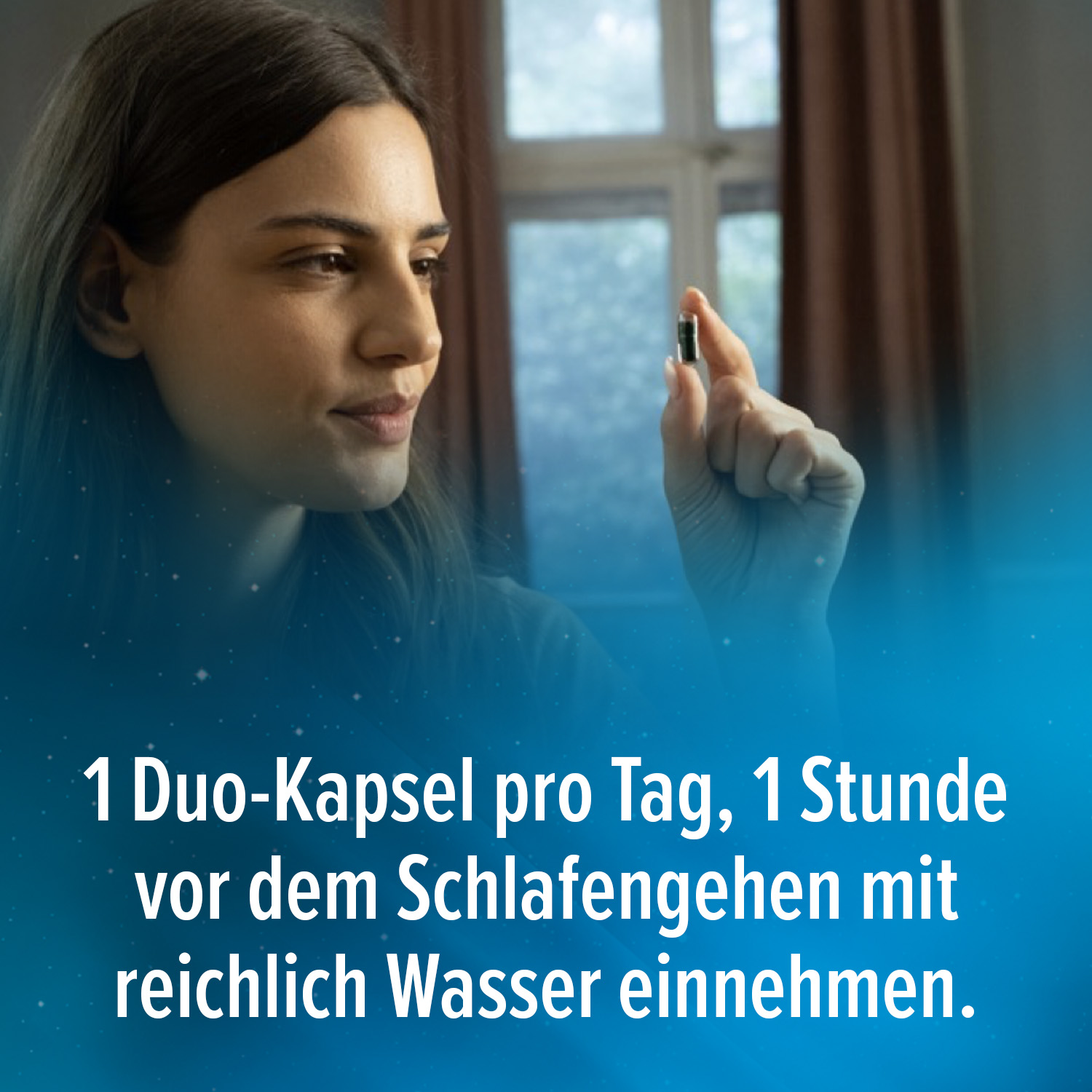 • Ganz einfach eine Kapsel pro Tag, eine Stunde vor dem Schlafengehen mit reichlich Wasser einnehmen