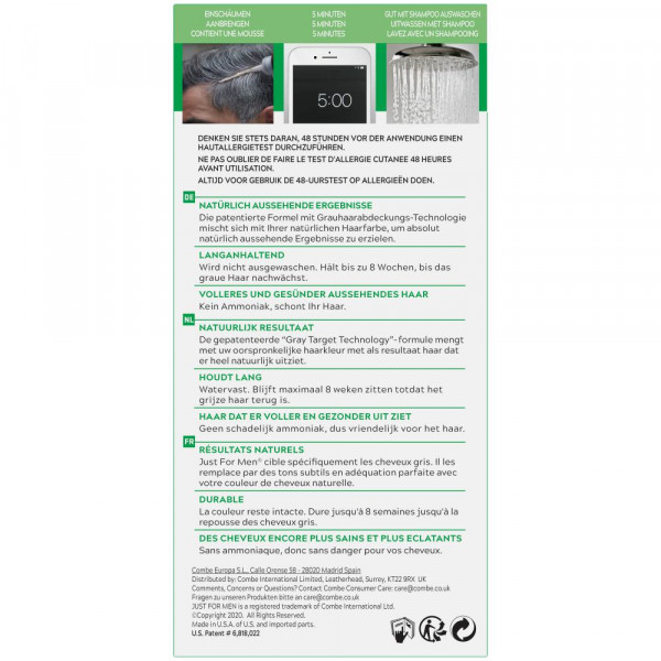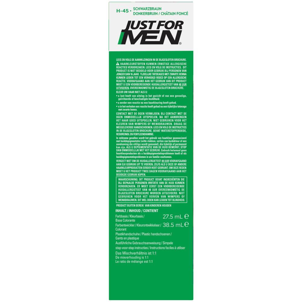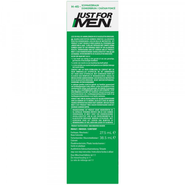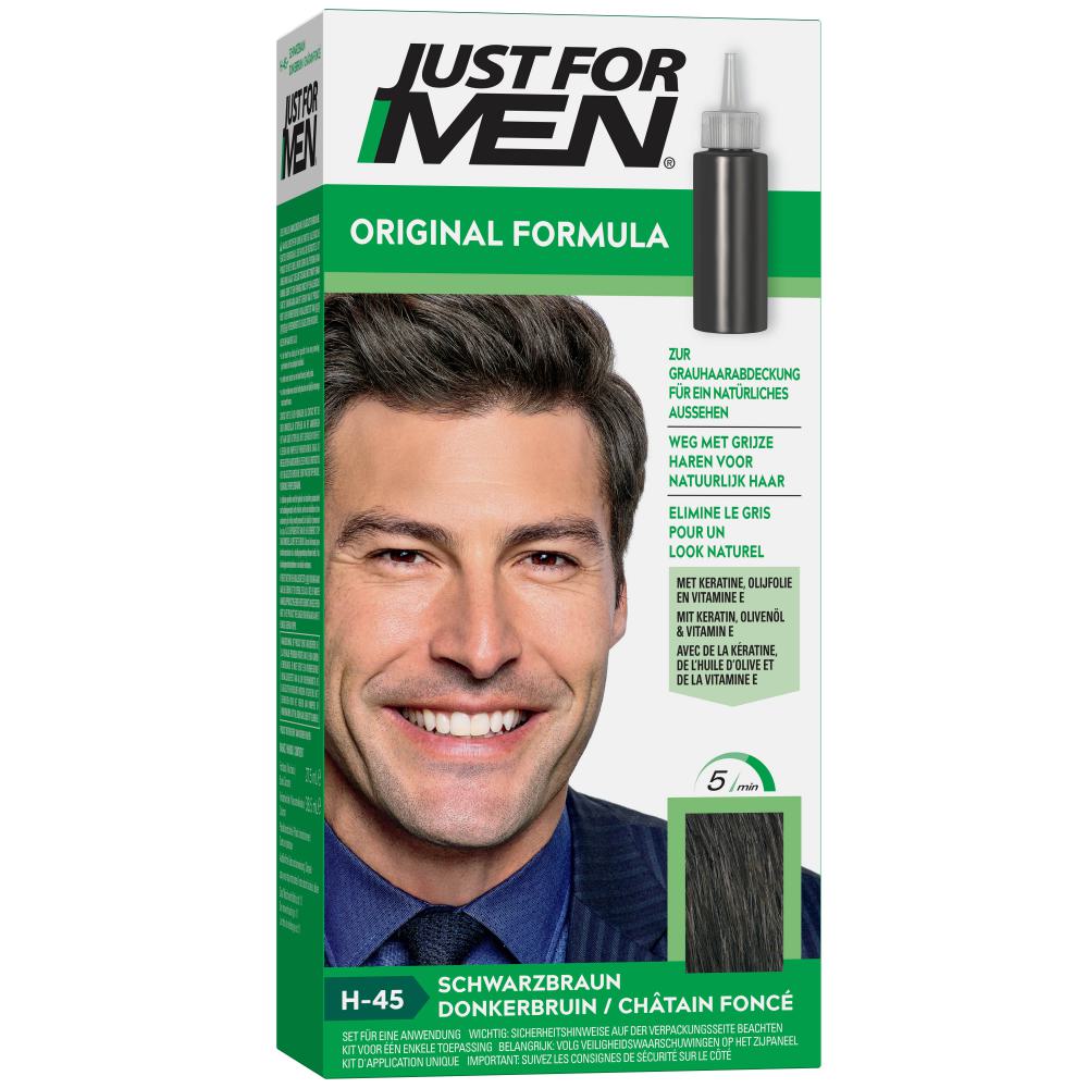 - Graue Haare weg und ein natürliches Aussehen in nur 5 Minuten. JUST FOR MEN wirkt nur auf grauen Haaren und deckt sie mit Tönen ab, die der natürlichen Haarfarbe gleichen.