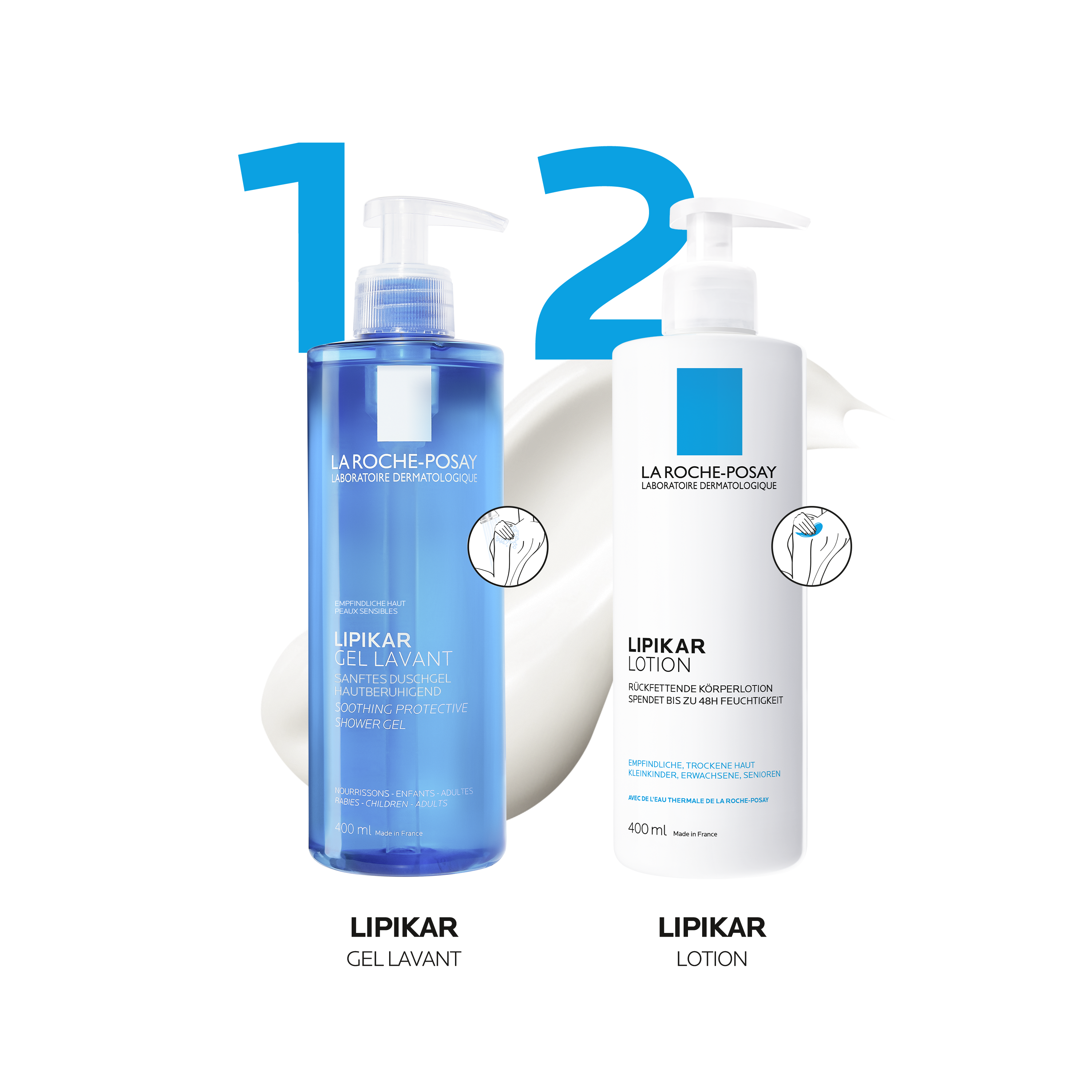 Die LIPIKAR LOTION einmal am Tag auf die mit einem milden Produkt gereinigte Körperhaut auftragen. Zur sanften Reinigung von empfindlicher Haut eignet sich das LIPIKAR GEL LAVANT. Bei trockener, gereizter Haut ist das LIPIKAR SURGRAS die optimale Reinigung. Für zarte Babyhaut ist das rückfettende LIPIKAR DUSCH- UND BADEÖL AP+ ideal.