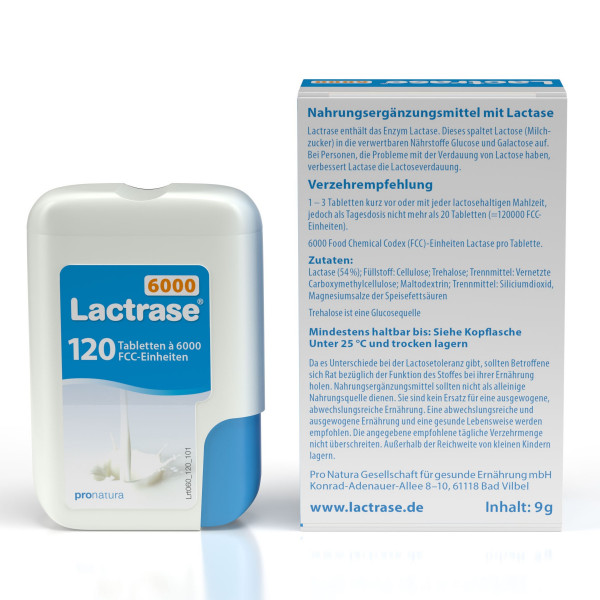 1 - 3 Tabletten kurz vor oder mit jeder lactosehaltigen Mahlzeit, jedoch nicht mehr als 20 Tabletten (= 120.000 FCC-Einheiten) pro Tag.