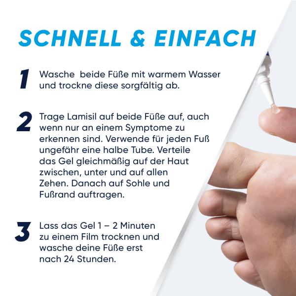 - DREIFACHWIRKUNG: Lamisil Once® dringt unter die Haut ein und lindert die Symptome von Fußpilz. Unser Wirkstoff Terbinafin wirkt direkt gegen den infektionsauslösenden Pilz, bis dieser abgetötet ist.