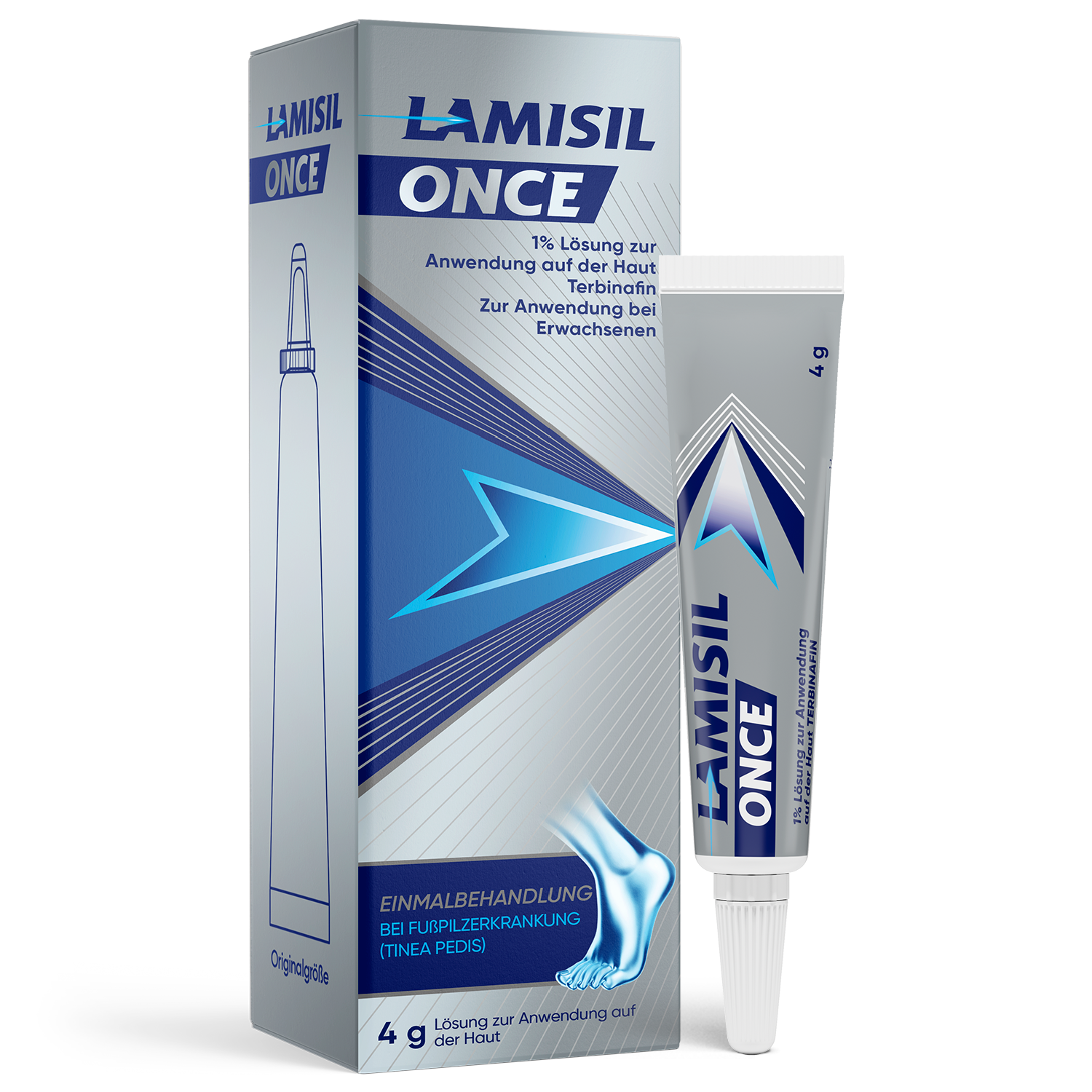 - LESEN UND BEFOLGEN SIE DIE ANWEISUNGEN IN DER PACKUNGSBEILAGE: Lamisil Once® ist ein Arzneimittel, daher sollten Sie die Anweisungen in der Packungsbeilage sorgfältig lesen und befolgen. Wenden Sie sich immer an Ihren Arzt oder Apotheker, wenn Sie an einer Vorerkrankung wie z.B. Diabetes leiden, andere Arzneimittel einnehmen oder wenn die Symptome anhalten. Bitte fragen Sie vor der Einnahme Ihren Arzt oder Apotheker um Rat, wenn Sie stillen, schwanger sind, eine Schwangerschaft planen oder unter Allergien leiden. Geeignet für Personen ab 18 Jahren. Bewahren Sie das Arzneimittel außerhalb der Reichweite von Kindern auf.