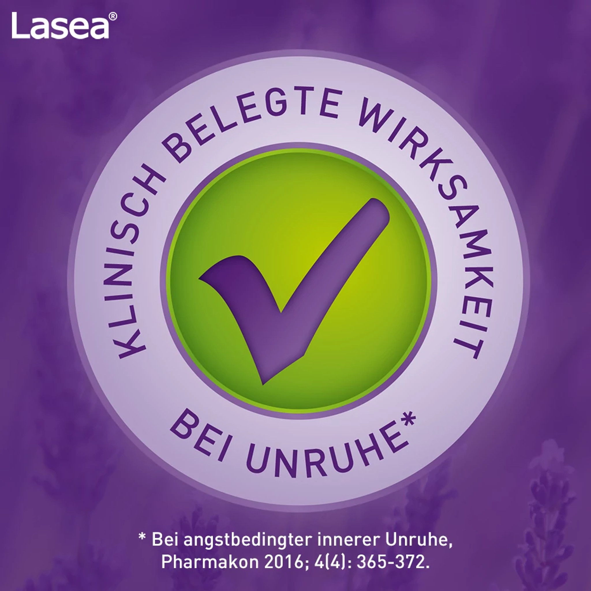 Lasea® Wirkstoff: Lavendelöl. Zur Behandlung von Unruhezuständen bei ängstlicher Verstimmung. Zu Risiken und Nebenwirkungen lesen Sie die Packungsbeilage und fragen Sie Ihren Arzt oder Apotheker.
