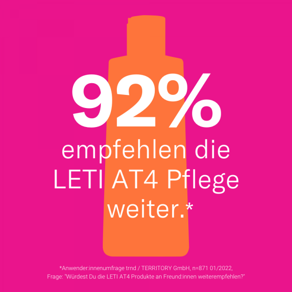 Die Pflegelinie LETI AT4 wurde speziell für die Bedürfnisse von trockener oder zu Neurodermitis neigender Haut (med.: atopische Dermatitis) entwickelt.