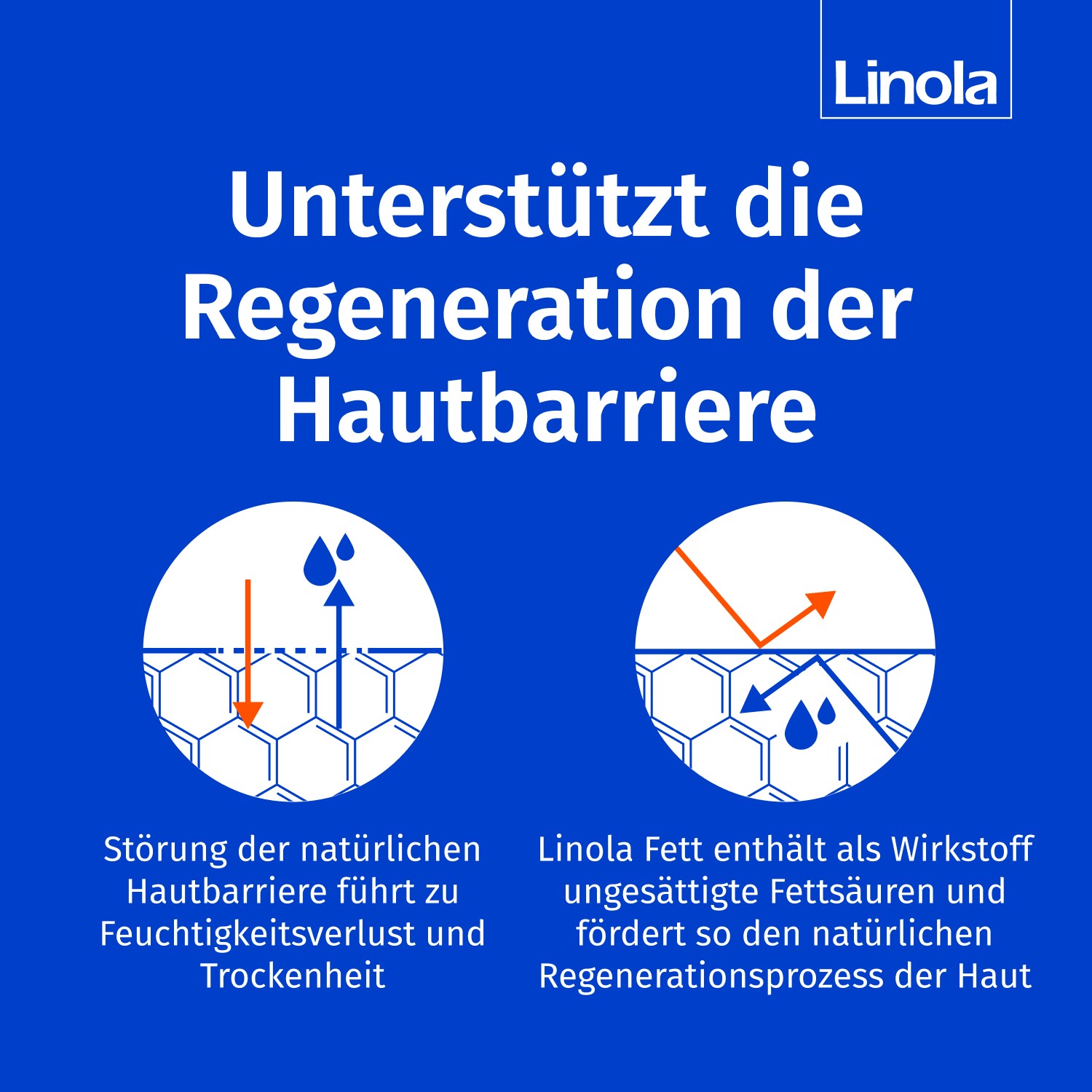 Ist die Barrierefunktion der Haut gestört, verliert sie viel Feuchtigkeit. Die Haut wird trocken, schuppt, wird unter Umständen rissig und juckt. Damit sich die Hautbarriere regenerieren kann und der Feuchtigkeitsverlust gemindert wird, benötigt die Haut essenzielle Fettsäuren, wie z.B. die Linolsäure. Der Körper kann Linolsäure nicht selbst herstellen, diese muss im Falle einer gestörten Hautbarriere von außen zugeführt werden.