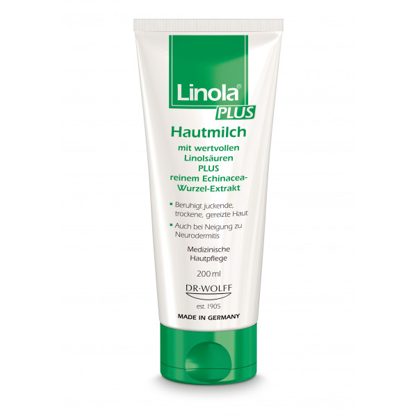 Linola PLUS Hautmilch ist eine Intensivpflege der besonderen Art bei juckender, trockener und gereizter Hautjuckreizlindernde und hautberuhigende Intensivpflege der Haut (W/Ö-Emulsion 25%)