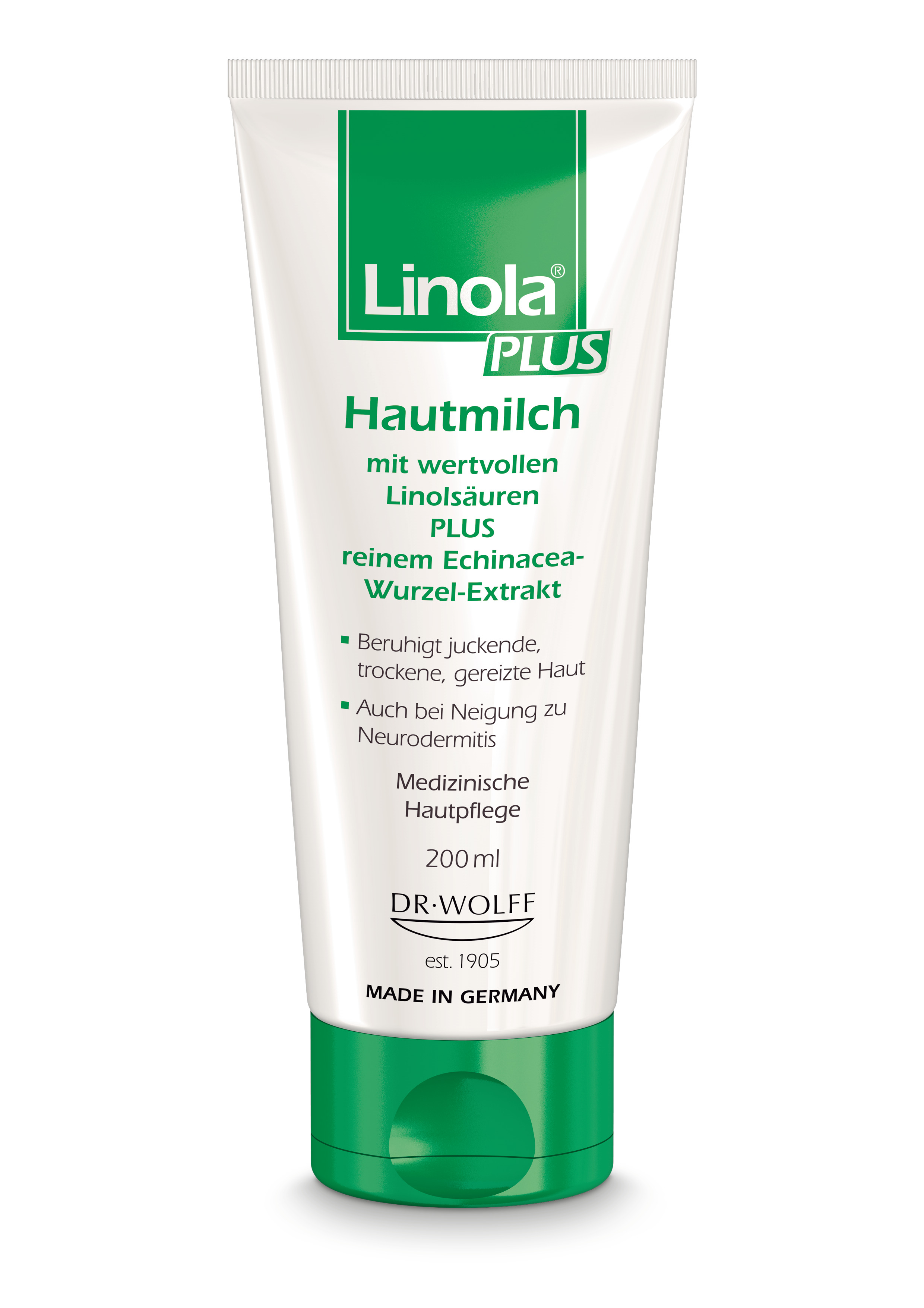 Linola PLUS Hautmilch lässt sich sehr gut auf großen Hautpartien verteilen. Sie zieht auch schnell ein. Den charakteristischen Duft auf der Haut verdankt sie dem Echinacea-Wurzel- Extrakt. Linola PLUS Hautmilch zeichnet sich durch ihre einzigartige Formulierung aus wertvollem Linolsäurereichen Distelöl sowie einem besonderen Pflanzenextrakt aus der Wurzel der Echinacea purpurea (Purpur-Sonnenhut) aus. Traditionell wurden und werden Extrakte aus Echinacea purpurea wegen ihrer gesundheitsfördernden Eigenschaften bei verschiedensten Hautproblemen eingesetzt. Der in Linola PLUS verwendete Extrakt wird mithilfe „Grüner Technologie“ schonend und besonders rein gewonnen. Hierbei wird allein natürliche Quellkohlensäure verwendet. Im Gegensatz zu anderen Verfahren können bei dieser Art von Herstellung keine Lösungsmittelrückstände im Extrakt zurückbleiben. In einem geschlossenen Kreislaufsystem wird die eingesetzte Kohlensäure vollständig recycelt.