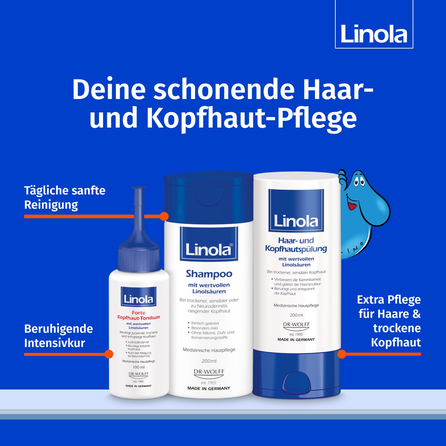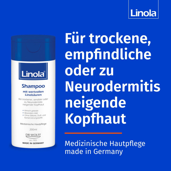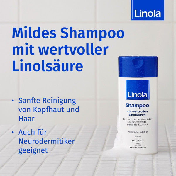 Linola Shampoo wurde speziell für die Pflegebedürfnisse trockener, empfindlicher und zu Neurodermitis neigender Kopfhaut entwickelt. Das Shampoo reinigt Kopfhaut und Haare besonders sanft und schonend. Vorhandene Feuchtigkeitsdefizite der Kopfhaut werden ausgeglichen. Die Linolsäure stabilisiert die natürliche Hautschutzbarriere und wirkt Trockenheit und Reizungen entgegen.