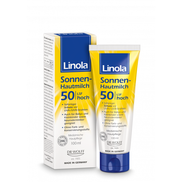 - Auch wasserfeste Präparate wie Linola Sonnen-Hautmilch müssen nach einem längeren Aufenthalt im Wasser sowie nach jedem Abtrocknen mit einem Handtuch erneut aufgetragen werden. • Babys und Kleinkinder bis zum Alter von etwa 3 Jahren sollten vor jeder direkten und längeren Sonnenstrahlung geschützt werden, da ihre Haut viel empfindlicher reagiert. Am besten geeignet hierfür ist das Tragen einer Kopfbedeckung sowie von Kleidung mit speziellem UV-Schutz. Gleichzeitig sollten freie Hautstellen immer durch Sonnenschutzmittel (mindestens LSF 25) geschützt werden.