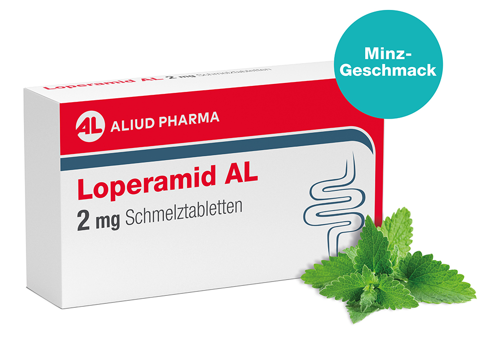 Dank der praktischen Darreichungsform als Schmelztablette kann das Arzneimittel ganz einfach ohne Wasser eingenommen werden – ideal für unterwegs und für Personen, denen das Schlucken von Tabletten schwer fällt. Loperamid AL 2 mg Schmelztabletten zergehen bequem auf der Zunge und und schmecken nach Minze. Das Arzneimittel ist zur kurzzeitigen Anwendung bei Erwachsenen und Jugendlichen ab 12 Jahren geeignet.