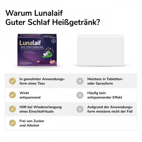 - Lunalaif® Guter Schlaf Heißgetränk unterstützt Enstpannung² und schnelleres Einschlafen¹