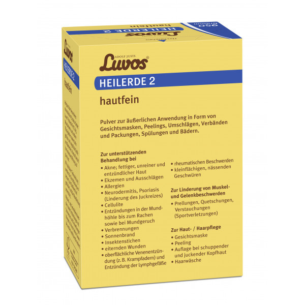 Das Naturheilmittel Luvos-Heilerde 2 hautfein zeigt eine natürliche und effektive Wirkung bei Akne. Außerdem bessert es Haut-, Muskel- und Gelenkbeschwerden sowie Entzündungen wie Sonnenbrand und Insektenstiche. Sportverletzungen wie Prellungen, Quetschungen und Verstauchungen lassen sich ebenfalls natürlich lindern.