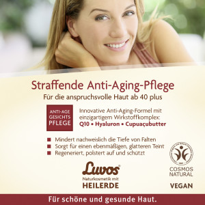 Damit die natürlichen Power-Wirkstoffe perfekt eindringen können, die Haut vorher sanft mit etwas Luvos Heilerde Waschcreme und Gesichtswasser auf einem Wattepad reinigen. Danach das Luvos straffende Anti-Age Augenserum zart rundherum einklopfen. Die Luvos Heilerde straffende Anti-Age Tages- und Nachtpflege komplementieren das tägliche Intensiv-Programm optimal.