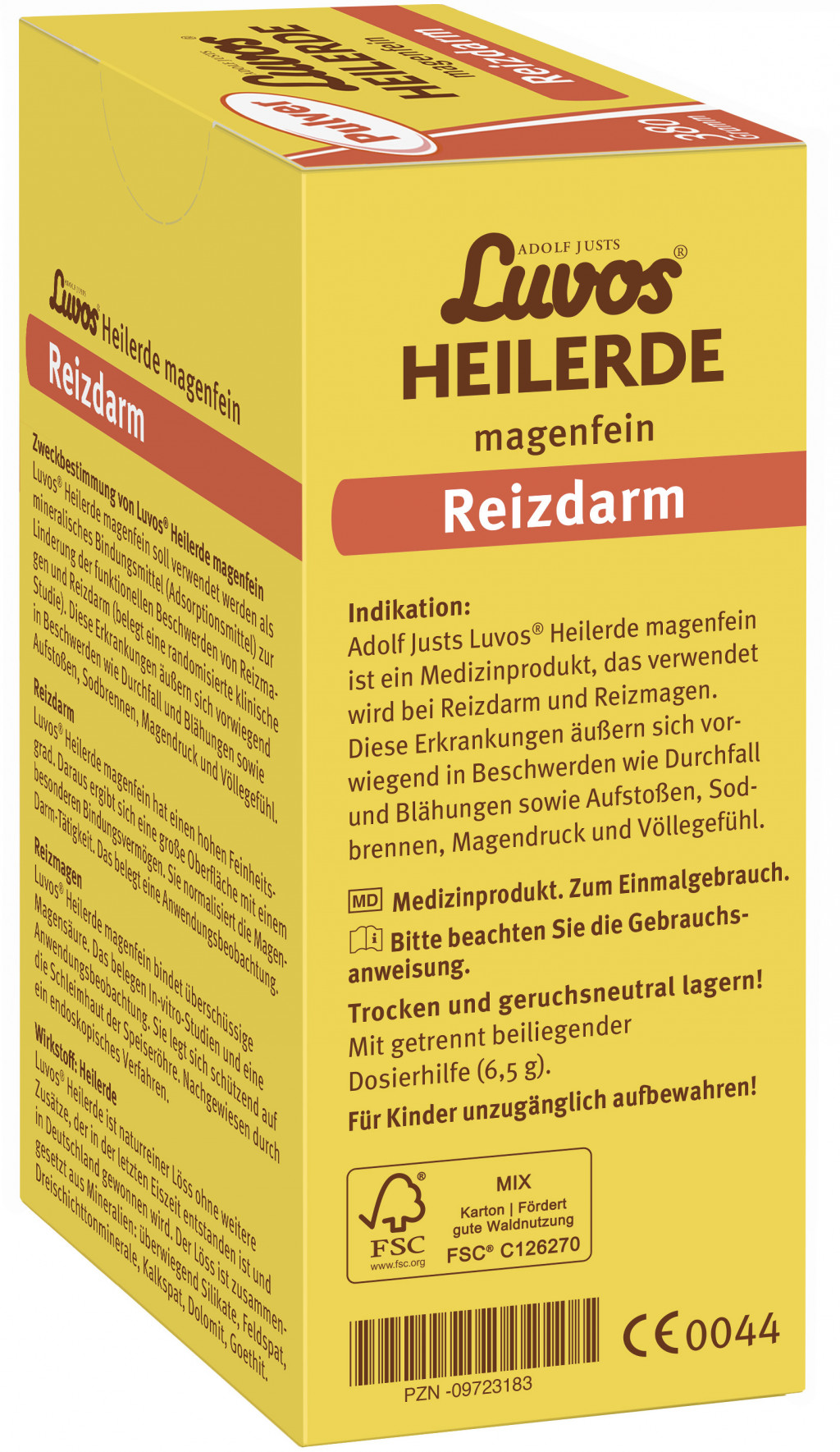 Adolf Justs Luvos® Heilerde magenfein ist ein Medizinprodukt, das alsmineralisches Magen-Darm-Mittel zur unterstützenden Behandlung der funktionellen Magen-Darm-Erkrankungen Reizdarm und Reizmagen verwendet wird. Diese Erkrankungen äußern sich vorwiegend in Beschwerden wie Durchfall und Blähungen sowie Aufstoßen, Sodbrennen, Magendruck und Völlegefühl.