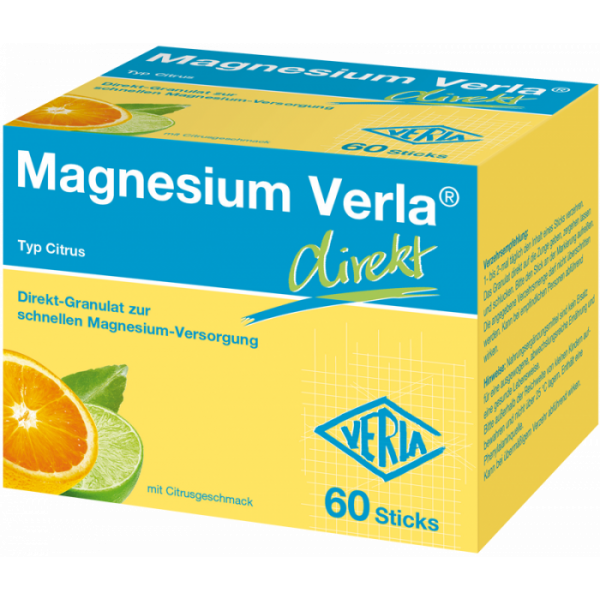 Eine optimale Versorgung mit Magnesium ist sehr wichtig, denn es trägt unter anderem zu einer normalen Muskelfunktion, einer normalen Funktion des Nervensystems und zu einem normalen Energiestoffwechsel bei. Magnesium leistet auch einen Beitrag zur Verringerung von Müdigkeit und Erschöpfung. Mit 1 bis 2 Direkt-Sticks Magnesium Verla® direkt Typ Citrus (150-300 mg Magnesium) können Sie Ihre tägliche Ernährung und Versorgung mit Magnesium sinnvoll unterstützen.