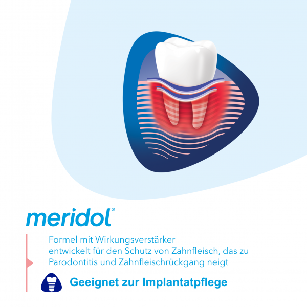 EXPERTENPFLEGE FÜR ZAHNFLEISCH: Schützen Sie Ihr Zahnfleisch, Zähne und Implantate durch Putzen mit meridol Parodont Expert Zahnpasta, die die Ursachen von Zahnfleischbluten und Entzündungen bekämpft*.