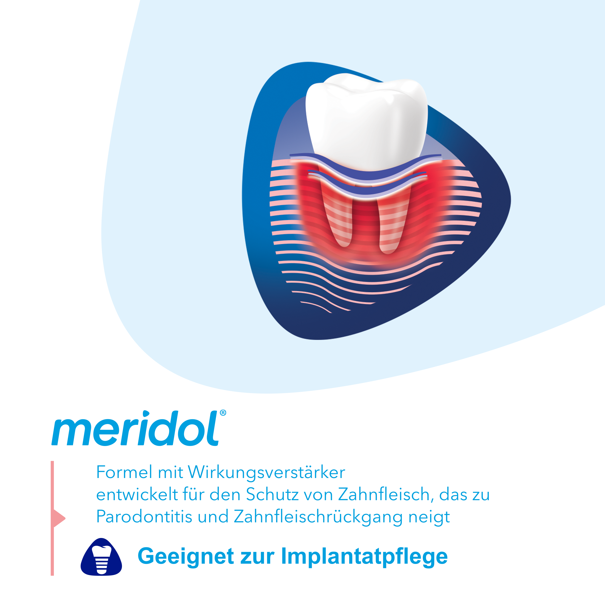Schützen Sie Ihr Zahnfleisch, Zähne und Implantate durch Putzen mit meridol Parodont Expert Zahnpasta. Diese Zahnpasta bekämpft nicht nur die Ursache von Zahnfleischbluten und Entzündungen*, sondern hilft auch, die Widerstandskraft Ihres Zahnfleisches gegen Zahnfleischbluten, Parodontitis und Rückbildung zu stärken. Die Zahnpasta bekämpft gezielt Plaquebakterien, die oft die Hauptursache* des Problems sind. Die pflegende Formel der Zahnfleischschutz Zahnpasta wirkt effektiv und ist klinisch bestätigt, sowohl für natürliche Zähne als auch für Implantate.