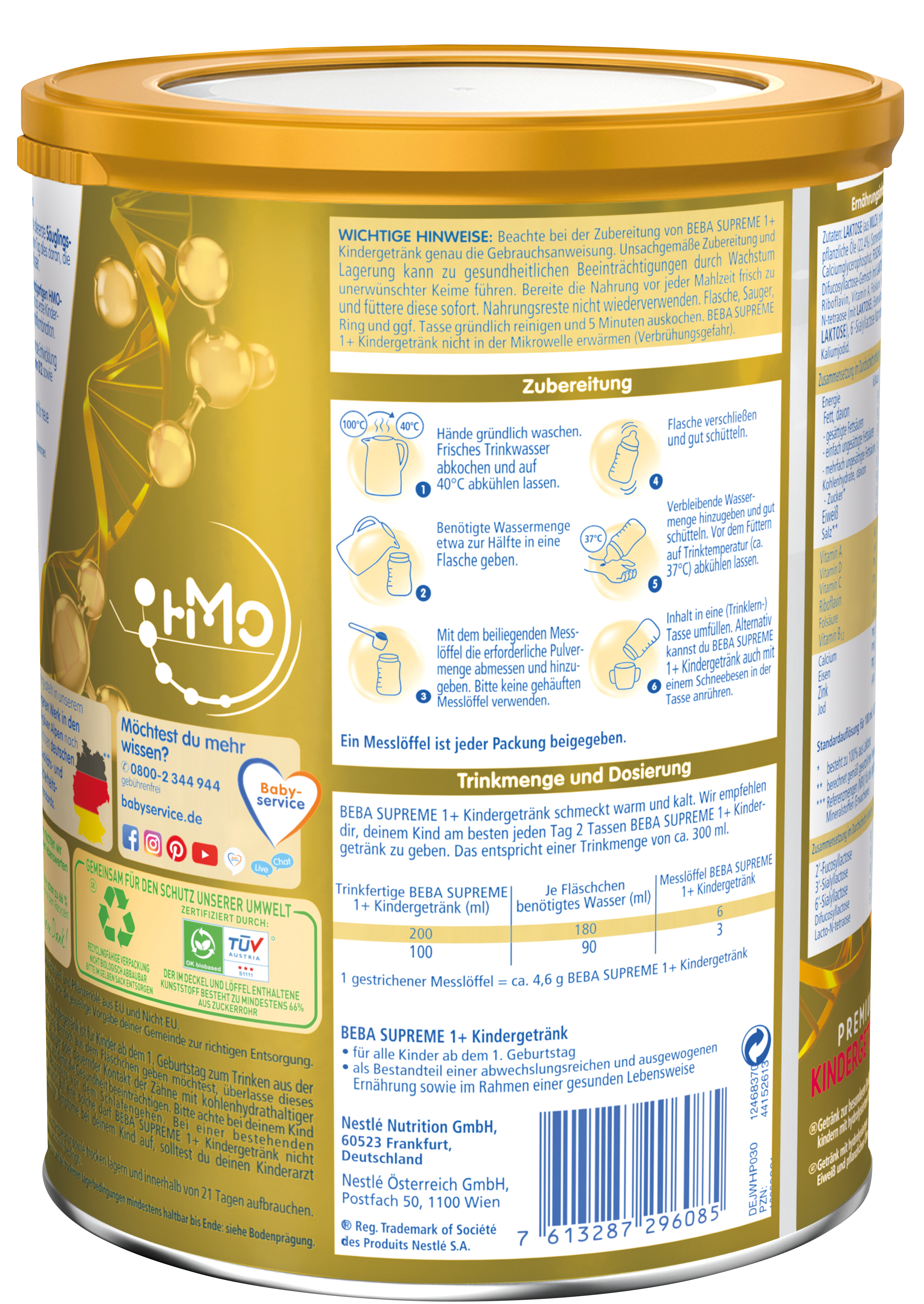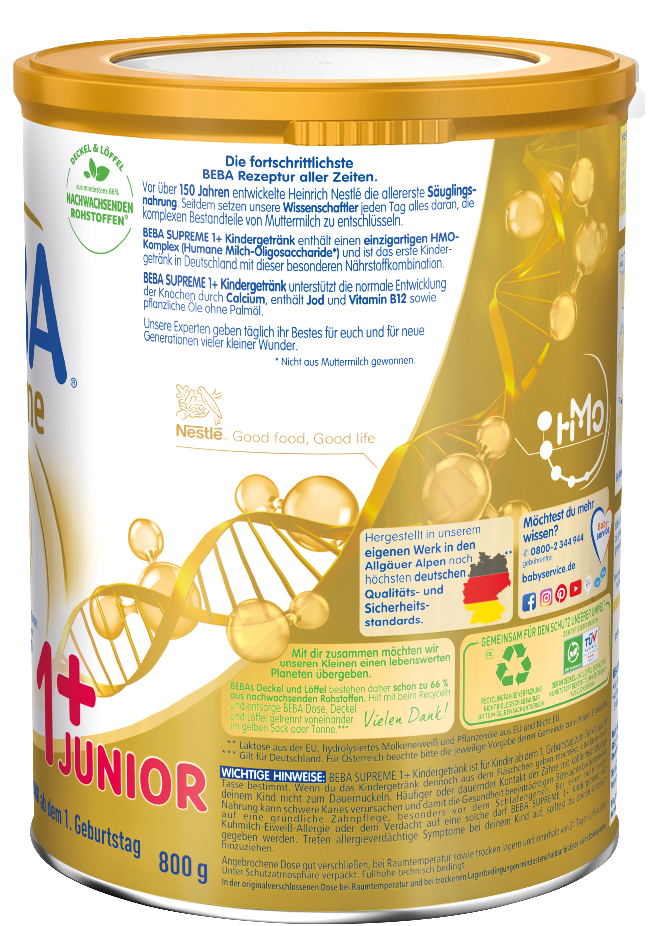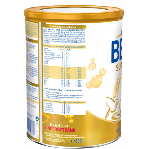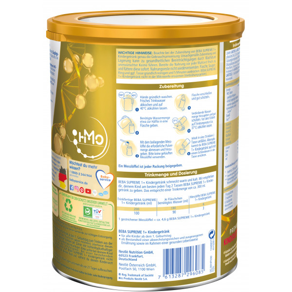 BEBA SUPREME 1+ Kindergetränk basiert auf den neusten Erkenntnissen der Muttermilchforschung: Es enthält einen einzigartigen HMO-Komplex und ist das erste Kindergetränk in Deutschland mit dieser besonderen Nährstoffkombination. Die Humanen Milch-Oligosaccharide* (HMO) sind einzigartige Bausteine und identisch mit denen, die natürlicherweise in der Muttermilch vorkommen.